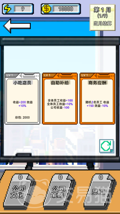 图鉴系统设计丰富多元,涵盖六大主题系列,总计收录400余张技能图谱,满足收藏型玩家需求。成就头衔系统采用趣味化命名逻辑,风格轻松诙谐;整体美术采用经典像素风呈现,NPC形象生动饱满,员工天赋特效具备独特视觉识别度。玩家在运筹帷幄经营公司的同时,亦能沉浸于高辨识度的视听氛围中,逐步构建专属商业帝国,向全球商业巅峰发起冲击。