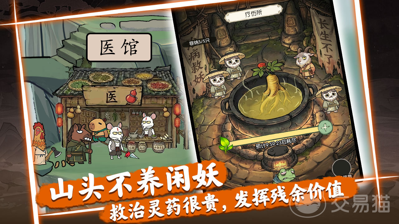 游戏设定在一个荒芜衰败的山域,前任山大王已逝,山头陷入无主状态。玩家将扮演新晋首领,从零开始重建势力。初期需优先扩充部众——通过消耗金币招募各类小妖,金币投入越多,所招小妖的基础属性越强。后续需依据个体特质合理分配岗位:勤勉型可安排至炼丹坊或矿场等高强度区域;散漫型则适合守山门、巡林等低负荷任务,实现人岗精准匹配。