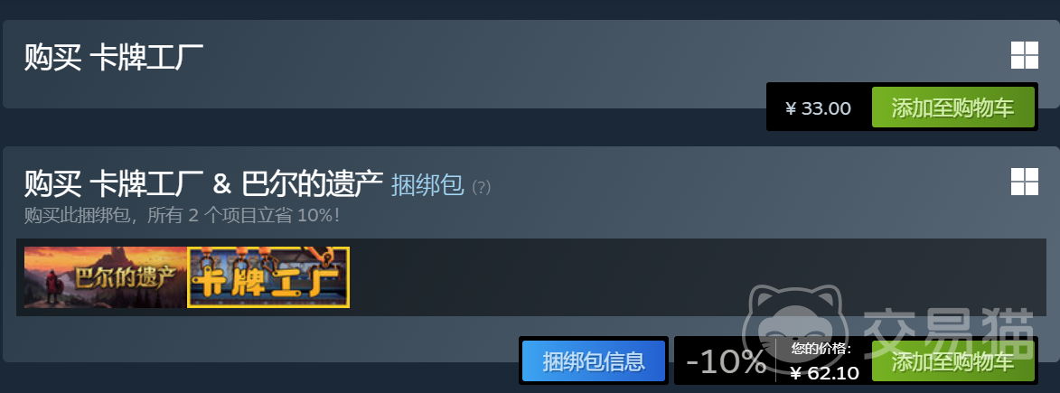 目前,《卡牌工厂》在Steam平台的正式发售价为33元。首发首周曾提供限时优惠,折后价为29元,但该折扣期已结束。当前所有新购用户均需按标准售价33元完成购买。这一价格定位契合主流独立游戏的定价区间,与其轻量级体量、完整的核心玩法及持续更新潜力相匹配。