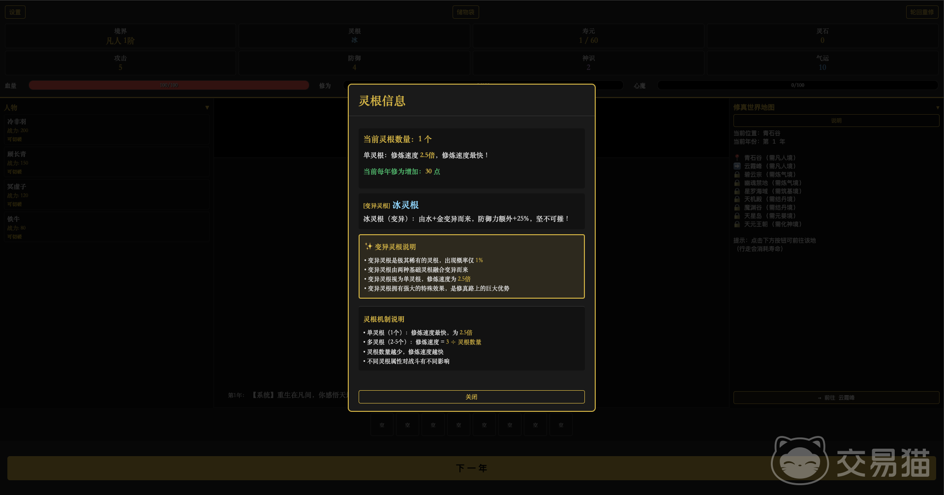游戏的核心玩法深度植根于修仙世界观设定。每位修士初始灵根由系统随机生成,涵盖单灵根、五灵根及稀有变异灵根三大类型,不同灵根对应差异化的资质成长曲线与功法适配路径,极大提升了角色养成的策略维度与长期可玩性。这一机制杜绝了千人一面的成长模板,真正实现“一人一命格,一修一道途”。