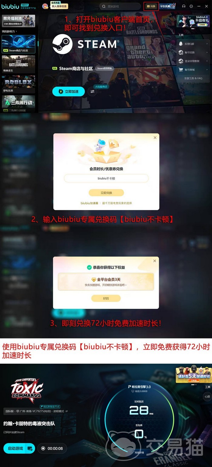 游戏支持四人联机小队模式,战局复杂度显著提升,对网络延迟与连接稳定性构成挑战。此时,专业级网络加速服务成为必要补充。当前适配《毒液突击队》的加速方案已升级至帕拉斯引擎3.0架构,通过智能路由优化与节点动态调度,有效降低丢包率与抖动。该版本经职业选手左梓轩深度参与调优验证,覆盖全平台主流登录方式。所有用户均可凭口令“biubiu不卡顿”兑换3天全平台加速会员权限;新注册用户还将自动获赠24小时免费体验时长,两项权益可叠加使用。