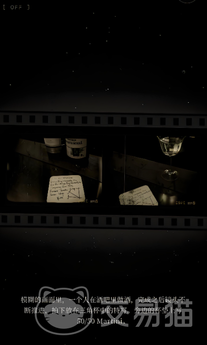 游戏采用高度风格化的视觉语言:全篇以黑白主色配合胶片颗粒质感呈现,转场设计融入老式放映机机械音效与暗黄基调光影,强化年代悬疑张力。环境细节经过精密编排,空荡吧台、未熄灭的烟灰缸、倒扣的酒杯等静物皆暗藏叙事伏笔,大幅提升场景代入深度。