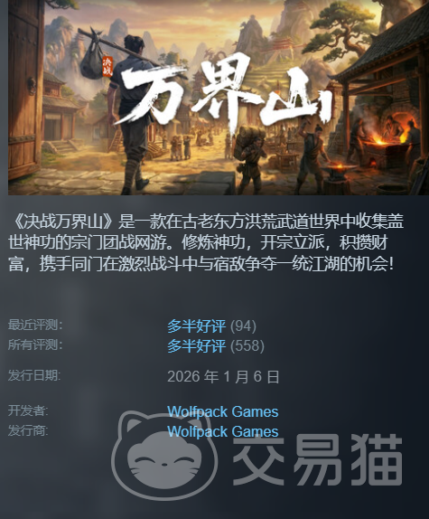 《决战万界山》作为2026年开年重磅MMO大作,已于1月6日正式登陆Steam平台。游戏主打“零绑定、不卖数值”的公平竞技理念,所有战力成长均依赖玩家操作水平与战术决策,彻底摒弃付费碾压机制,为硬核MMO爱好者构建了真正以实力说话的开放世界。