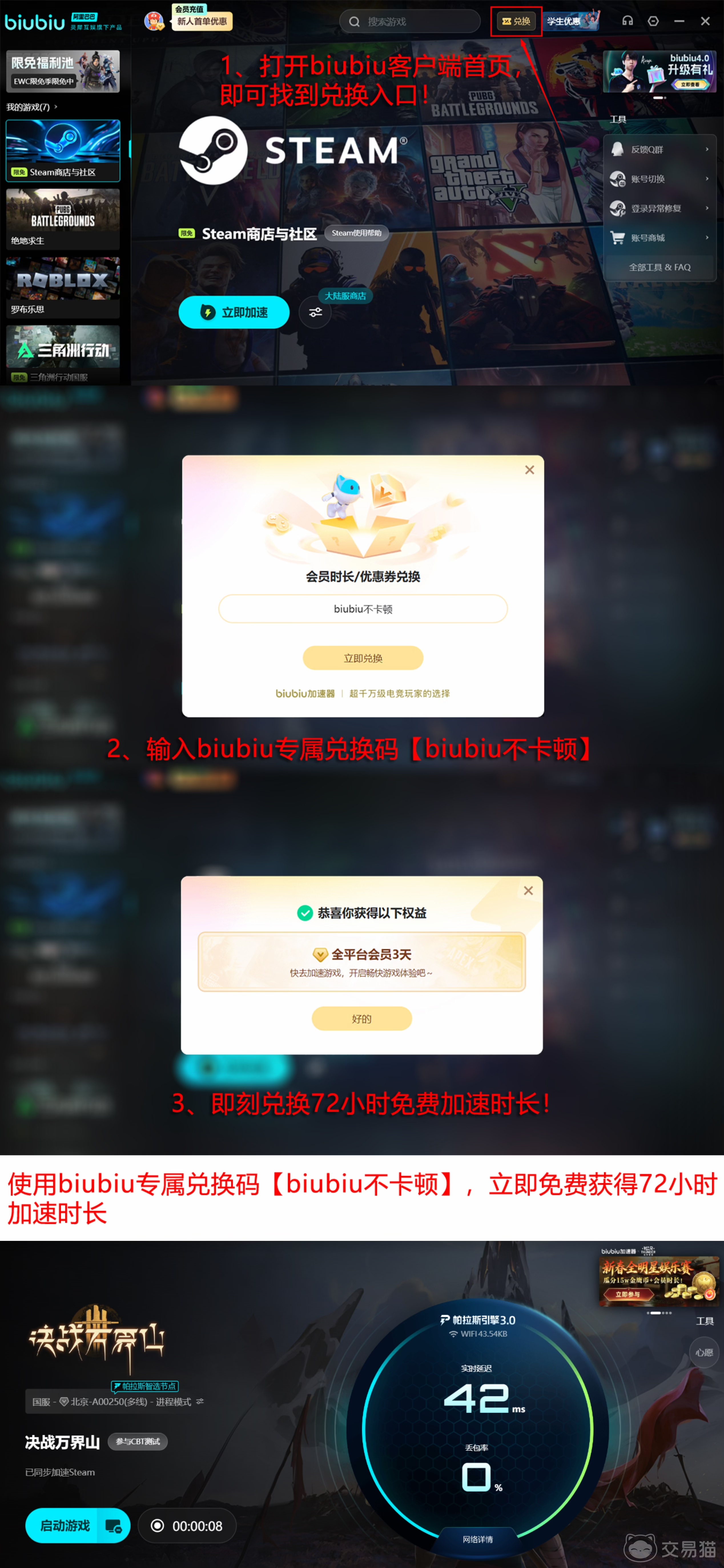 该工具基于自研帕拉斯3.0网络协议引擎,具备动态路由调度与抗抖动强化能力,已获职业电竞战队Pero官方认证为指定联机辅助软件。新用户首次启动即可自动激活24小时全节点加速权益;所有注册账号还可凭口令【biubiu不卡顿】兑换3日连续加速服务。