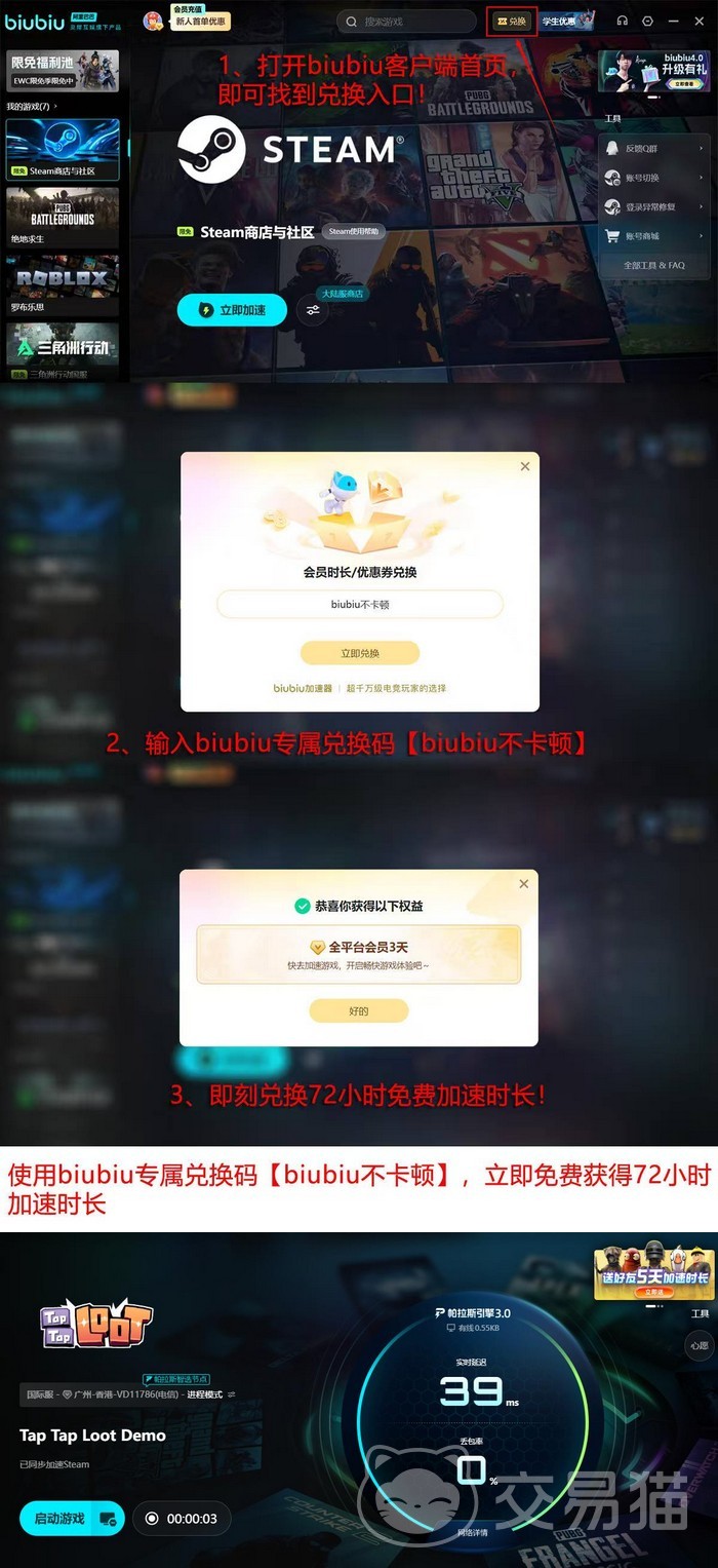 biubiu加速器由阿里巴巴灵犀互娱研发,其最新版本搭载帕拉斯引擎3.0技术架构,实现更高效的数据路由调度与链路优化能力。该方案已通过职业电竞场景验证,PUBG职业选手左梓轩曾参与产品调优测试,并将biubiu列为pero战队日常训练指定加速工具。新用户可享最长4天免费试用期;另提供“biubiu不卡顿”专属口令,新用户激活后可额外获得24小时体验时长,新老用户均可领取3天使用权,且两项时长支持叠加使用。