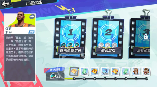 “巨星试练”则归属休闲玩法模块,需玩家已拥有对应球星后方可解锁专属副本。副本命名融合角色标志性身份,如“飞天魔兽”“空位之神”“克城之子”,每个副本严格还原该球员职业生涯中的经典动作模组、关键比赛场景及战术执行逻辑。通关并非无目标自由发挥,须达成关卡预设条件(如限定时间内完成特定得分方式、触发指定连招次数、保持某项命中率阈值等)方可累积星级。