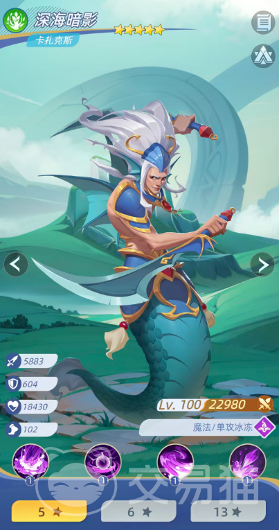第二核心输出位推荐深海暗影卡扎克斯。该角色专精单体冰冻打击,主力技能“水窒”可对单一目标造成269%伤害并附加冰冻效果,初始冰冻概率为50%,升至3级后提升至80%。除控制外,卡扎克斯具备异化强化机制与负面状态驱散能力,有效保障自身免受敌方减益干扰;其“破冰”技能在后期成长后显著增强爆发力,是冰冻队中不可或缺的精准打击担当。