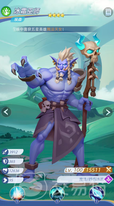 群控支援位推荐四星角色冰霜巫师埃森。虽星级不高,但其群体技能“急冻术”可对敌方全体施加194%魔法伤害,并附带20%基础冰冻概率。该角色优势在于多重减益叠加能力,可通过增益效果间接提升全队冰冻覆盖率,是优化整体控场频率的重要枢纽。