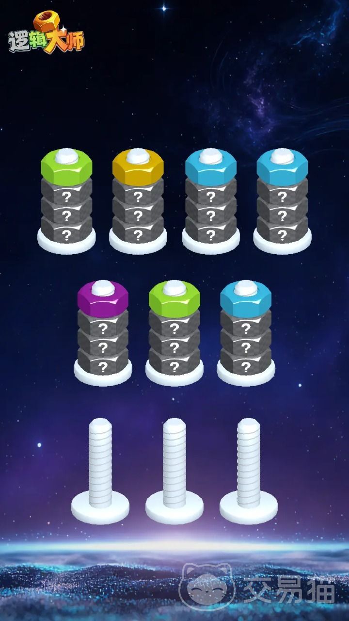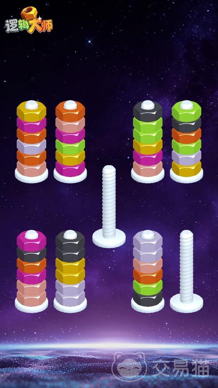 入门阶段的核心任务是螺母归位:界面中分布着红、黄、蓝等多种色系螺母,玩家需通过拖拽操作,将同色螺母沿指定轨道归并至同一路径。关键在于优先处理空间冗余与色彩序列冲突——例如,若黄色螺母过早填满某条轨道,可能导致后续蓝色或红色组件无法按规则嵌入,从而引发连锁卡关。因此,每一步移动都需兼顾当前目标与后续容错空间。