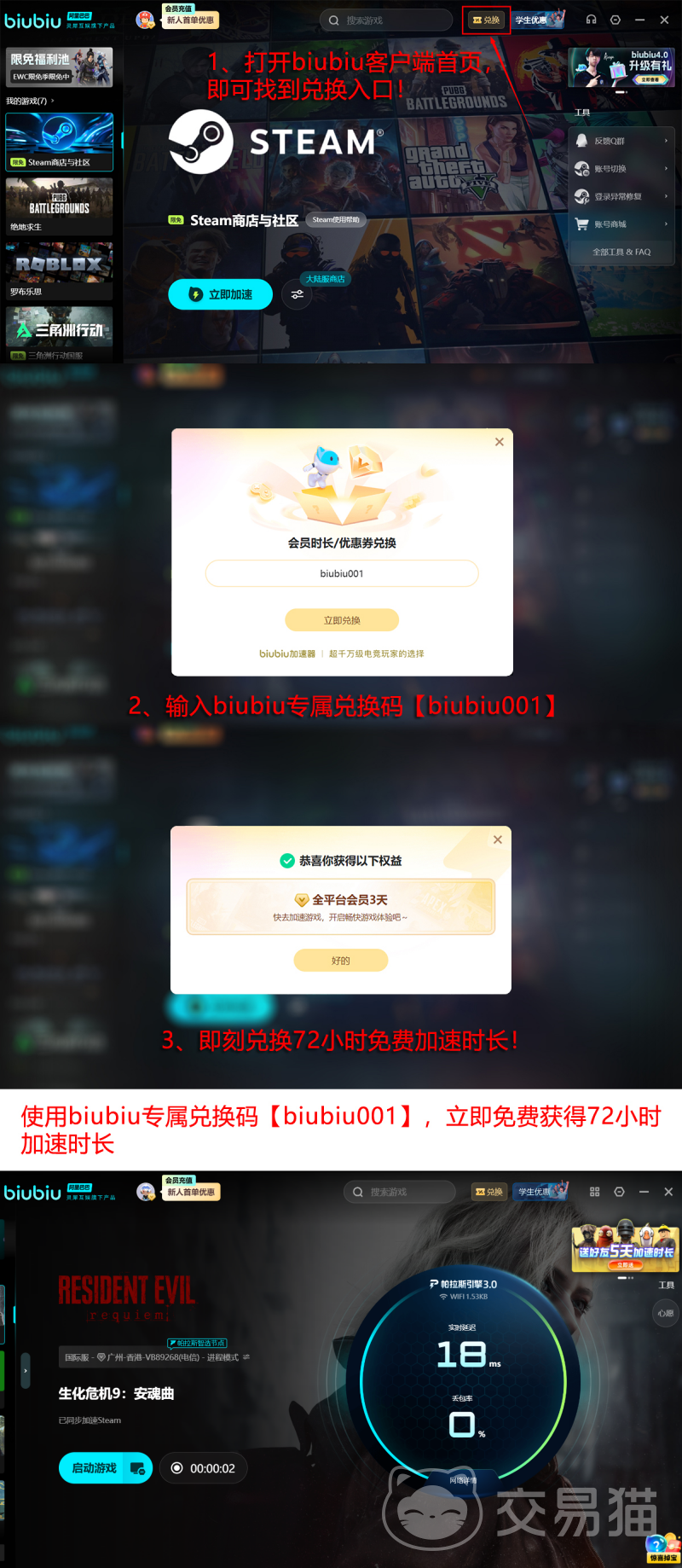 专属剧情扩展内容作为隐藏要素,将补充主线未尽的关键设定与人物背景,帮助玩家更系统地理解《生化危机》世界观的演进逻辑与内在关联。为保障多人模式及在线功能运行顺畅,biubiu加速器凭借帕拉斯3.0引擎驱动,结合九游、、biubiu加速器同属阿里巴巴灵犀互娱旗下产品的协同优化能力,可有效降低网络延迟。当前输入兑换码【biubiu001】,新老用户均可获赠3天免费加速时长;新用户额外解锁24小时权益,累计可享96小时无门槛加速服务。