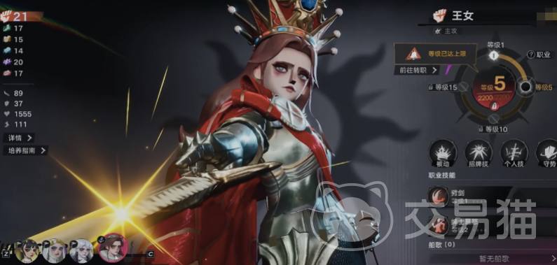 王女定位为近战爆发型主攻手,视觉标识为标志性皇冠。其战斗体系依托“战意”状态运转:一技能可瞬发140%攻击力伤害并快速积攒战意;二技能“猛斩”消耗20%当前生命值,对单体造成180%攻击力伤害,并额外获得一层战意;大招则需战意≥50方可激活,基础伤害为120%,且战意数值越高,最终伤害增幅越显著。配合单手剑装备,可高效清除低防单位,在精英战与Boss战中表现突出。