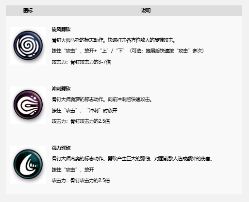 骨钉技艺是玩家向骨钉大师所学到的技能。施展骨钉技艺的方法是先按住“攻击”键蓄力,然后在释放时按特定的组合键。骨钉技艺所造成的伤害是骨钉攻击力的倍数,因此骨钉等级越高,骨钉技艺越强。