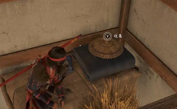 捕鱼大师斗笠位于建筑内的草垛上。