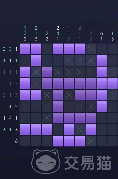 数涂本质上是一款基于数字线索的网格填涂推理游戏。玩家面对的是空白方格阵列,每行与每列顶部均标注一组数字。这些数字代表该方向上连续涂黑单元格的长度及段落数——例如“3 1”表示该行存在一段长为3的连续黑格,之后至少间隔一格,再出现一段长为1的黑格。全关卡总量超数千,难度梯度清晰,兼顾新手引导与高阶挑战。