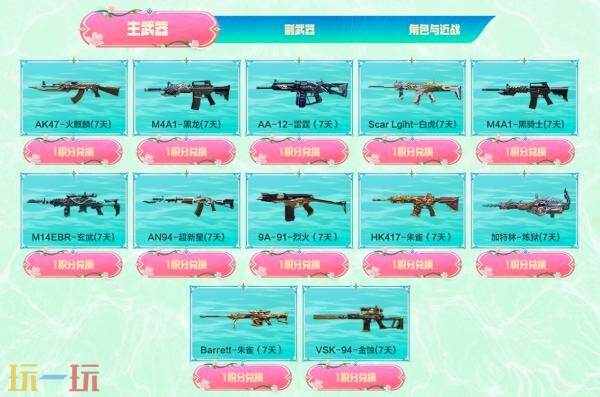 核心道具奖励:AK47-火麒麟(7天)、M4A1-黑龙(7天)、AA-12-雷霆(7天)、Scar Light-白虎(7天)、M4A1-黑骑士(7天)等热门期限武器。