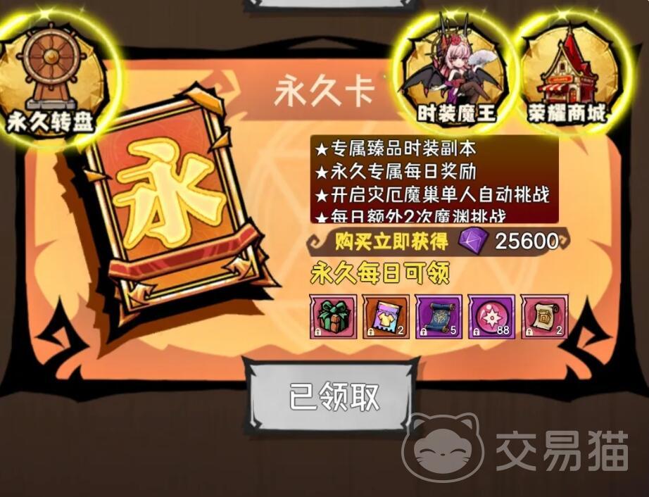 在月卡基础上进一步优化体验,建议按优先级分阶段配置特权卡:首选永久卡,其次为魔渊卡,再次是钓鱼卡,最后考虑宠物卡。其中,永久卡提供每日6元的持续资源返还机制,同步解锁时装魔王外观、转盘魔神狂潮副本额外挑战次数等多项专属权益,显著提升资源产出效率与玩法自由度。