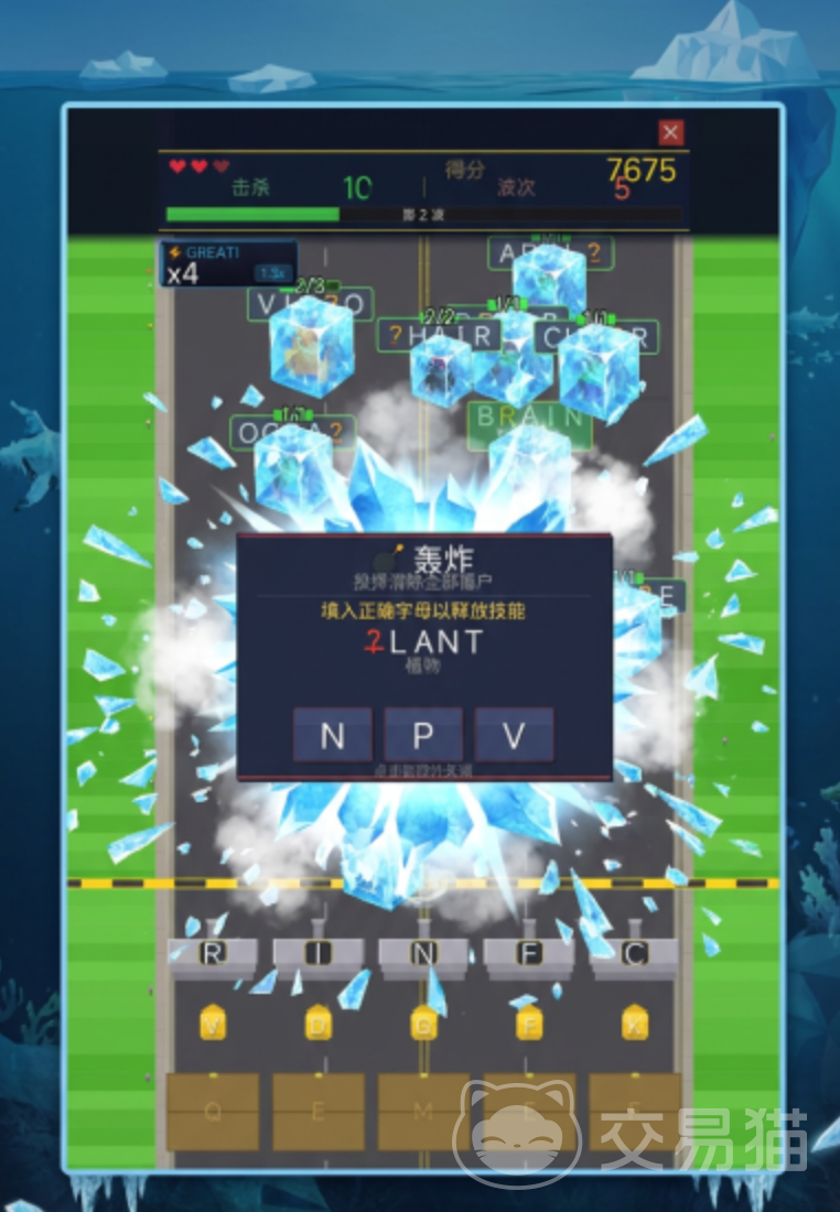游戏采用“字母炮台 填空关卡”双轨驱动模式:玩家需根据屏幕提示的残缺单词,快速调用对应字母模块进行精准填充,命中正确答案后方可触发攻击。该机制要求玩家兼顾反应速度、拼写准确率与词汇储备量,显著提升了认知参与度。当连击数持续累积,系统将解锁冰冻、范围轰炸等战术技能,进一步强化战斗策略维度——这不仅是手眼协调的考验,更是词汇即时调用能力的实战检验。