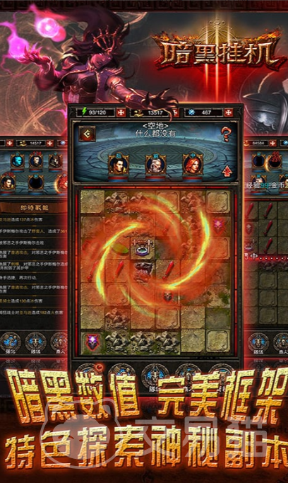 从视觉呈现到音效设计,《暗黑挂机》均围绕“沉浸感”进行深度打磨:环境音效随区域变化动态切换,BOSS战配乐采用交响化编曲增强史诗氛围,UI界面采用哥特式字体与蚀刻纹理,进一步强化暗黑美学统一性。玩家可在副本攻坚、世界Boss争夺、跨服竞技等多元玩法中,自主选择专注方向,实现玩法偏好与角色定位的高度契合。