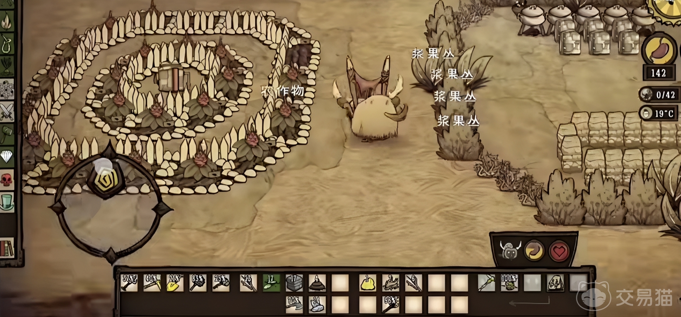 资源合成体系覆盖生存全周期需求。例如,以碎石 草 树枝可合成火把,保障夜间视野并驱散低等级怪物;燧石 树枝可打造石刀,显著提升农作物收割与植物采集速度;选址于水源旁或旧村落遗址建家,不仅便于取水与防御,更支持设置烹饪锅、床具及鸟笼等关键设施——休息可同步恢复生命值与理智值;篝火烹饪可激活食物增益效果;鸟笼驯养宠物后,可在Boss战中提供辅助攻击或状态干扰能力。