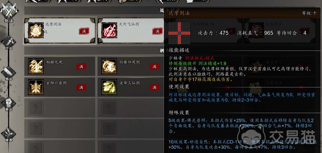 游戏后期,该剑法可进一步激活【绝对伤害】机制,理论输出上限明显高于“天外飞仙”等中期主流剑法。若搭配【达摩心法】使用,还可额外获得【金刚不坏】状态,实现攻防一体的综合成长路径,构成具备长期培养价值的终局向武学体系。
