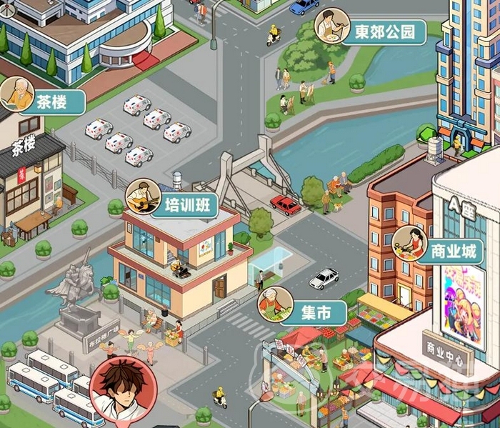 都市生态高度拟真,内置培训班、集市、商业城、茶楼、东郊公园、医院、学校、农田等十余类功能建筑。玩家可依个人发展路径自由选择修炼场所——在茶楼静心悟道,在医院调养状态,在农田耕作积累资源,在商业城交易稀缺材料,彻底摆脱线性任务驱动,构建个性化成长节奏。