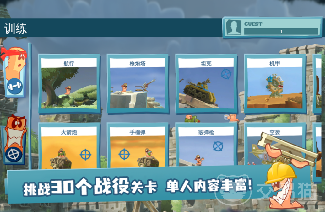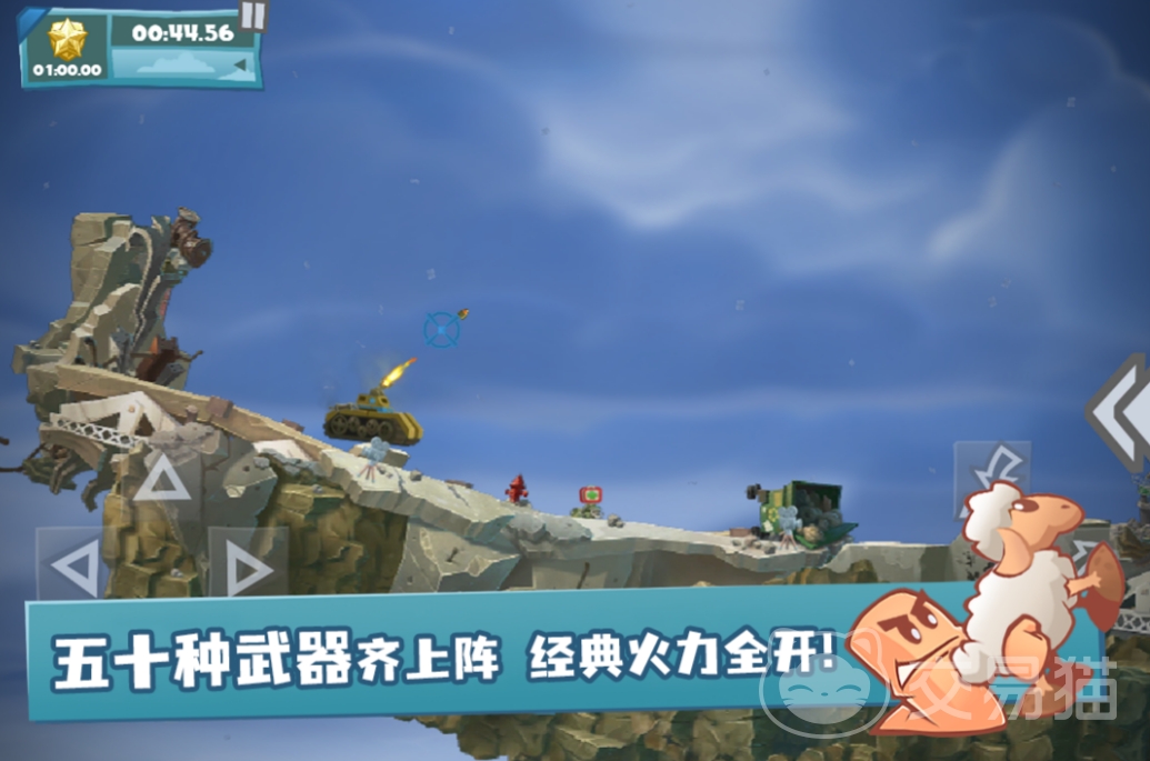 游戏采用标准回合制结构,每轮行动严格划分为移动、建造、攻击三阶段。地形起伏直接影响弹道轨迹,风速与风向实时影响投掷类武器落点,爆炸半径、掩体遮挡、高度差等物理参数均需纳入计算。这种设计拒绝无脑点击,强调预判与空间思维,但操作界面简洁,技能图标清晰,新手通过前五关即可建立基础战术意识。