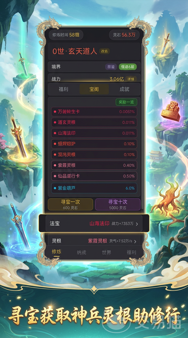 法宝系统支持自由收集与收纳,所有获得的本命法宝、护身法器、阵图典籍均可存入储物戒指,实现跨境界携带与组合搭配。此外,妖界爬塔副本提供策略性挑战——每层守关者属性各异,需依据其弱点调整功法、灵根与法宝配置,通关后可稳定获取灵石、悟道丹、进阶符箓等高价值资源。