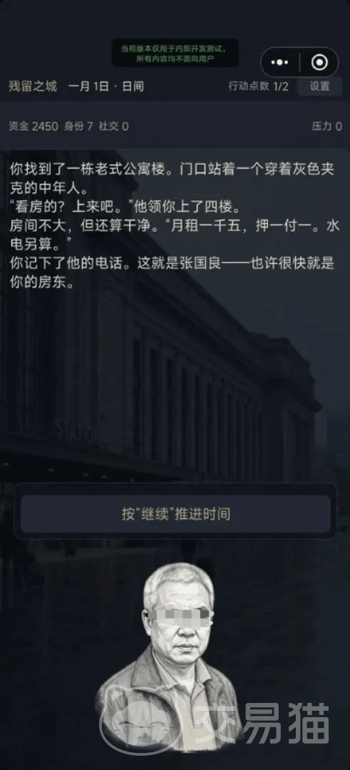 在《残留之城》这款沉浸式都市生存模拟游戏中,玩家将拖着行李箱踏入一座充满未知的陌生城市。手握2500元初始资金,你需要在为期一年的游戏周期内完成求职应聘、签订租房合同、缴纳水电房租、维系社交关系等真实生活挑战,在经济拮据、职业波动与人际疏离的多重压力下艰难求生。随着周目推进,城市表层之下的异常线索逐渐浮现,一场关于记忆、循环与被掩埋真相的悬疑解谜之旅就此展开。