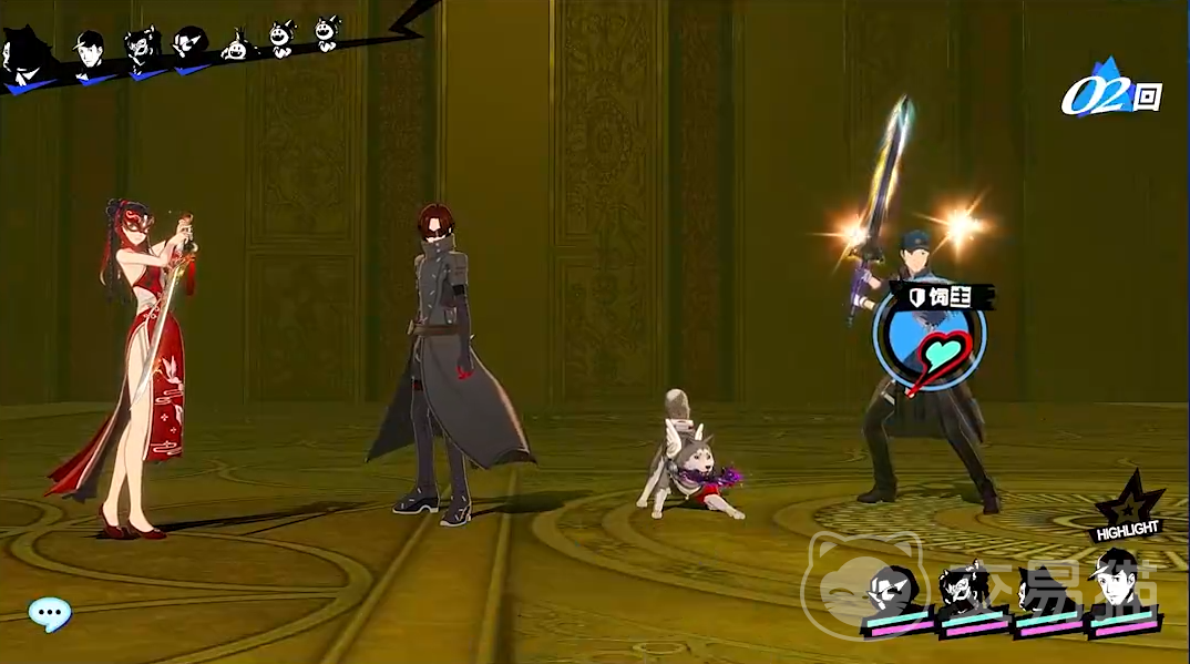 虎狼丸初始人格面具为“刻尔柏洛斯”,属性为诅咒,核心意识名为“城市人气王”。其核心玩法围绕“饲主协同”展开:战斗开始时,玩家需手动指定一名S.E.E.S.同伴为饲主。选定后,虎狼丸自身不再拥有独立行动回合,但会在饲主回合自动触发响应机制——包括释放援助技能、施加“灵魂追猎”状态,并依据饲主属性智能调用对应人格面具技能。