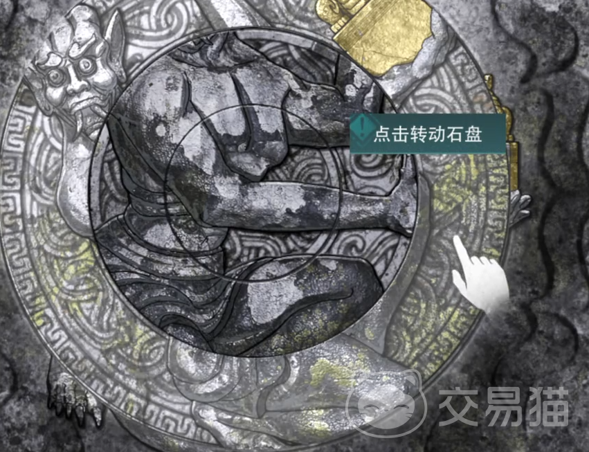此时场景切换至封闭石室,玩家需依循路径指引快速撤离。正前方可见一处盗洞,经简短交互后即可脱出。随后沿主墓道深入前行,抵达第一道石门时发现其处于闭合状态。解谜起点位于右侧雕像:调整其底座圆盘至指定方位;完成后转至对侧石像,同样校准对应圆盘角度。双机关复位后,石门自动开启。