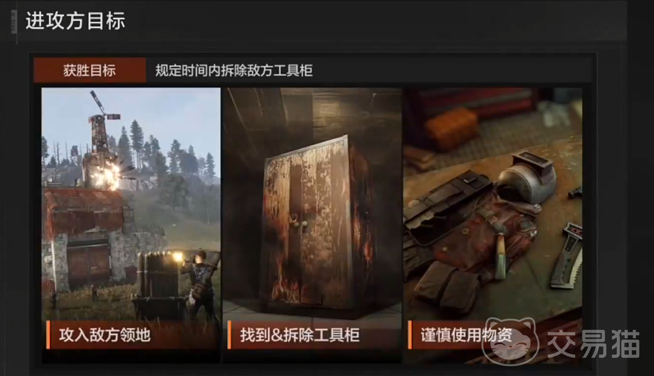 每局对战将玩家随机划分为进攻方与防守方两大阵营。进攻方需在15分钟倒计时结束前突破敌方防线,定位并摧毁位于其领地内的“工具柜”;防守方则须依托地形与设施,全程守护该目标不被破坏。开局时,双方均会获得基础配置:一把连射步枪、一具火箭筒、若干投掷类道具(如手雷、烟雾弹)及基础医疗物资。