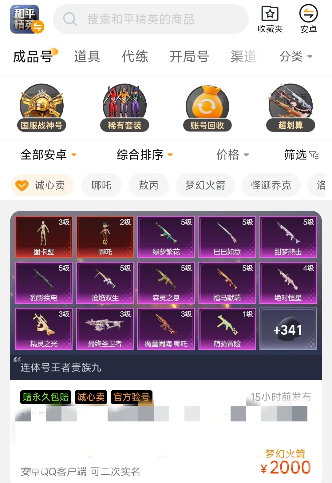除了安全之外,能够拥有如此多玩家的青睐还缘于许多亲民且便捷的一站式功能。就拿和平精英这款游戏来说,玩家买了号爽玩一段时间之后也许会因为这样或那样的原因想要脱坑,也许是工作忙也许是想尝试新游戏。这时候想要快速变现也非常容易,平台优秀的”账号回收“功能可以让玩家非常方便快捷地实现账号出手,充分体验验号——报价——回收的一条龙服务。