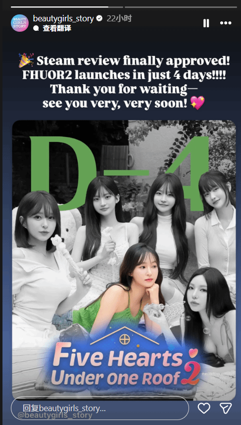韩国开发商Storytaco打造的真人互动影游《阿西, 美女室友竟然...?2》原定于11月10日发售,但受制于Steam平台审核流程又被延期。近日,游戏官号确认Steam过审,将在四天后正式发售。