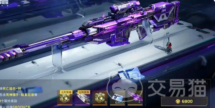 进阶通行证需消耗6800NZ解锁,包含两把高实用性主力武器:初始即赠“死亡猎手-狩了”,该武器在PVE场景中输出稳定、容错率高,特别适配萌新过渡阶段;随等级提升还可领取“死神猎手-炫紫狂潮”,具备高爆发与副本穿透特性,显著提升高难度关卡的通关效率与容错空间。