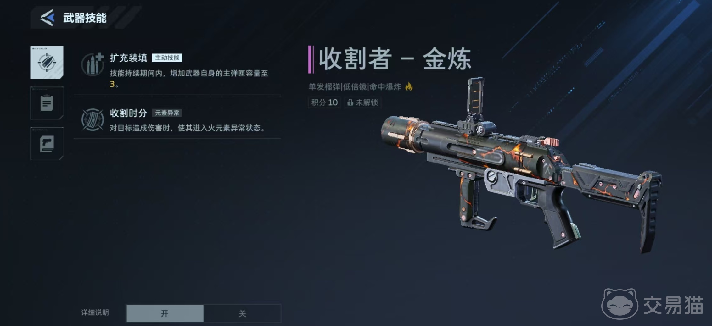 作为一款高爆发型单发榴弹,收割者的基础属性明确而鲜明:单发伤害为433点,射速27RPM,主弹匣容量仅1发,总携弹量为10发,爆炸有效半径达2.5米。这一组数值决定了它并非依赖持续压制的常规输出武器,而是以精准投送、范围杀伤与状态叠加为核心逻辑的战术装备。