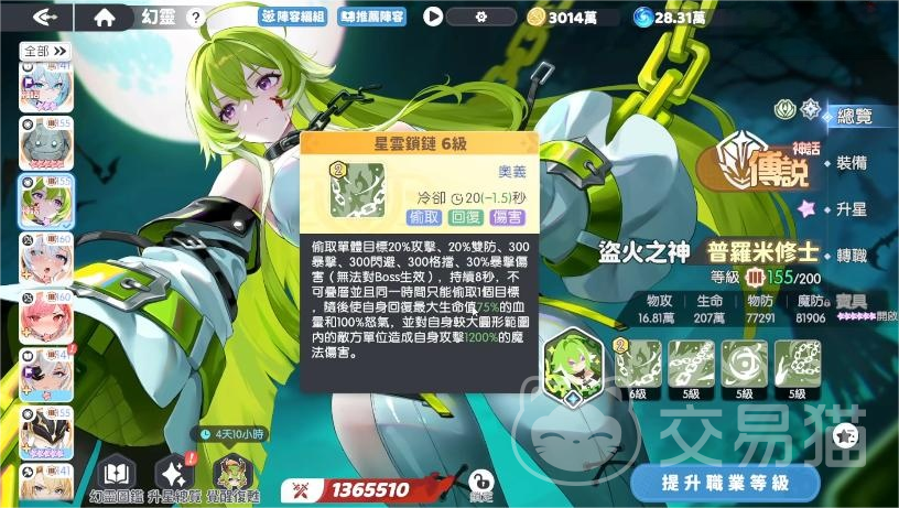 「星云锁链」赋予战术联动能力:命中敌人后可窃取其生命值与怒气值,契合“神火之盗”的角色设定。实战中建议将其部署于前排位置,以优先触发被动效果并高效获取资源;同时凭借可观的承伤能力,承担队伍前排压力,降低核心输出单位所受威胁,整体操作门槛较低,易于上手。