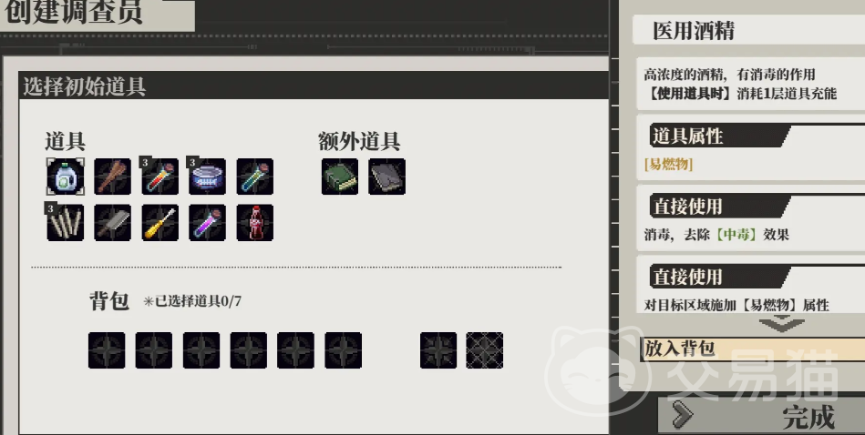 角色创建阶段仅开放“学徒”职业,属性加点需聚焦实用性:优先保障“能工巧匠”技能达到70点,这是防弹衣合成成功率的核心门槛。初始道具推荐选择医用酒精(便于早期伤口处理)、多瓶备用药品,以及若干本提升“科学”属性的书籍——这些将为后续道具合成与机关破解提供稳定支持。游戏开局须在卧室完整拾取三件基础物品;出门时顺手带走门口蜡烛,向右移动可触发灵感骰事件——值得注意的是,该判定失败不会扣除神经值,反而可能触发隐藏提示;随后即可进入画中密室,回收火把与子弹,并前往图书馆与入口处NPC完成首次对话。