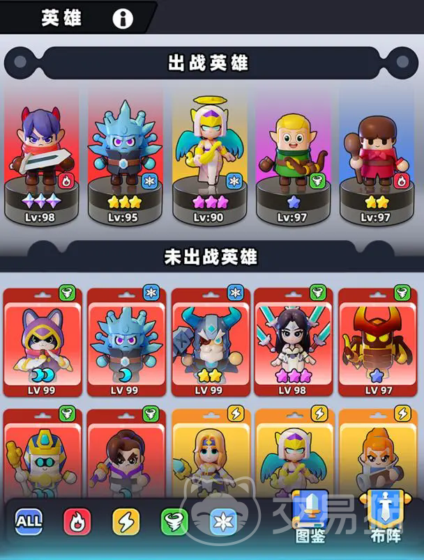 当玩家完成前期引导、解锁心愿单系统后,英雄池扩展明显,此时可构建更具成长性的多维输出阵容。本套以雷元素为核心输出路径,关键角色包括雷神、法老、焚焰射手、剑仙与天使。其中雷神为雷系绝对主C,法老负责降低敌方雷属性抗性,焚焰射手提供暴击率加成,剑仙叠加暴击伤害,天使维持全队血线与状态恢复。