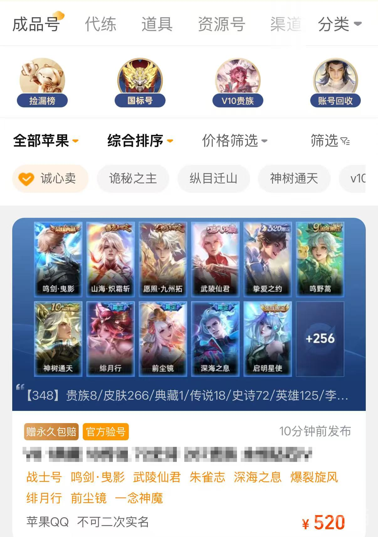 正规靠谱是的特点,大家不用担心高价买到假号,因为有官方提前验好了账号,佐证详细的验号报告。除了王者荣耀外,官方还支持超100款游戏的验号服务,而且都是热门游戏,保证出售账号的真实性。