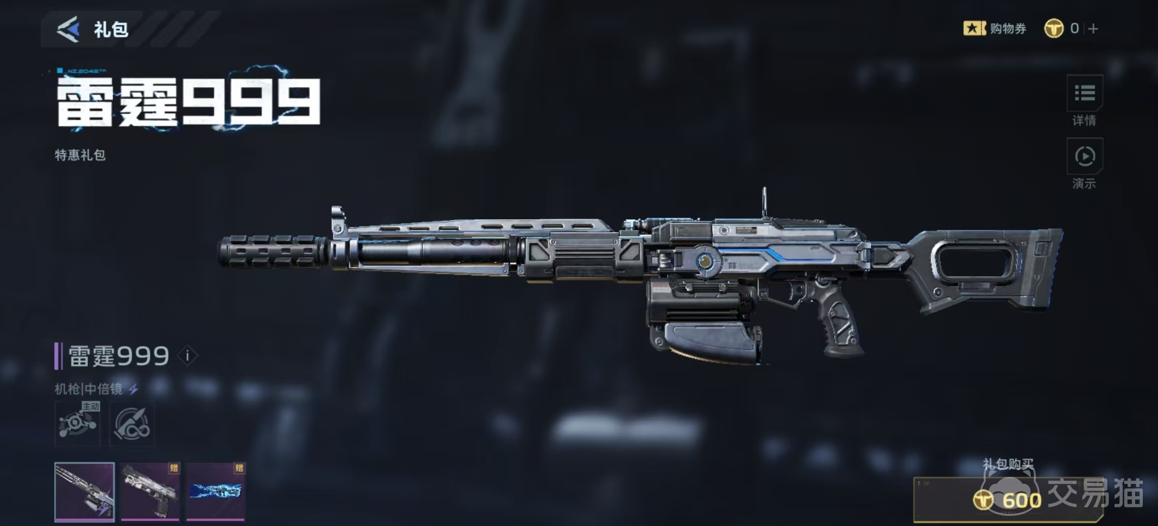 在皮肤尚未开放期间,玩家仍可通过商城直接入手雷霆999本体。当前售价为600点NZ点,对应礼包除包含雷霆999主武器外,还附赠雷霆之影手枪及电光火石名片,综合性价比突出,是现阶段快速组建高输出配置的优选方案。
