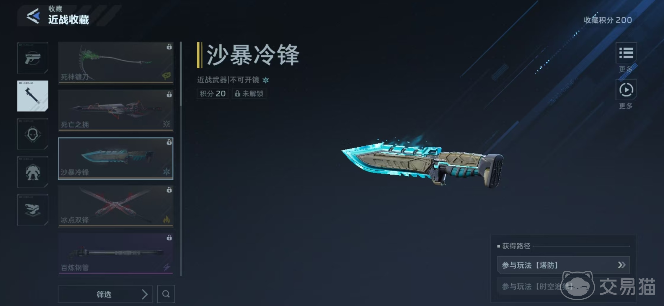 沙暴冷锋采用未来科技美学设计,刀身覆盖动态蓝晶涂层,刀背持续释放寒雾粒子效果,整体造型兼具凌厉感与科幻质感。该武器可通过两种稳定途径获取:其一为完成塔防模式中“英雄”或“炼狱”难度关卡;其二为通关指定挑战副本,存在概率性掉落。建议玩家在赛季等级达到18至27级区间时集中尝试获取,此时角色成长曲线与副本匹配度更优,资源投入产出比更高。