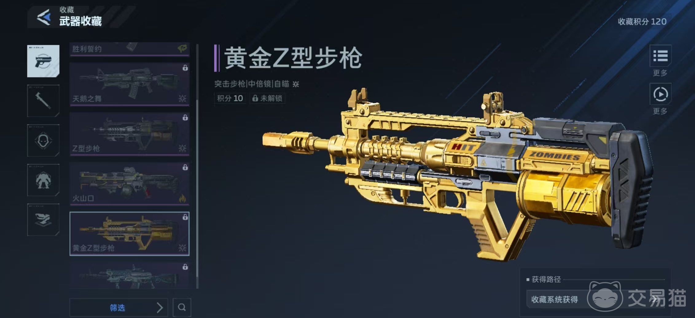 游戏为黄金Z型步枪设定了专属的成长体系,不依赖直接充值购买,而是通过系统化的收藏机制逐步解锁。玩家需进入主界面的【活动】模块,选择其中的【收藏】功能入口。该系统涵盖陷阱、武器、角色、机甲等多个类别,每完成一项收集均可获得对应积分。初始段位为青铜收藏家V级,随着积分累积,段位逐级提升;当达到青铜收藏Ⅱ级时,即可永久激活黄金Z型步枪,并同步领取大量GP点数。