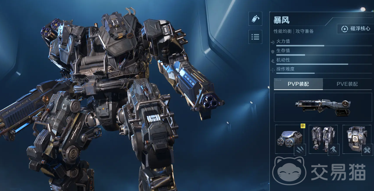 拥有全机甲序列中最高的基础生命值与物理抗性,是前线抗压与阵地推进的核心载具。主武器为重型加农炮,具备范围溅射伤害(AOE),但射击间隔较长,弹道存在明显飞行时间,命中依赖预判与提前量计算。整体上手难度最高,需熟练掌握目标移动轨迹预测、掩体利用及装填节奏管理,适合追求高风险高回报、擅长重装推进打法的进阶玩家。