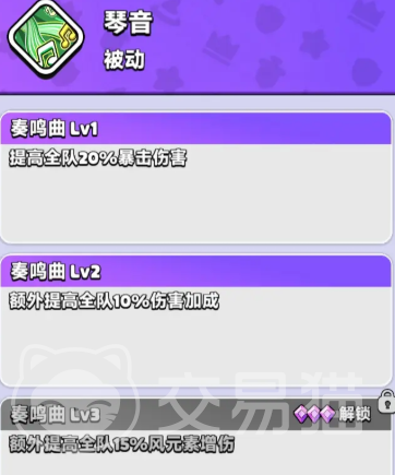 从角色定位来看,琴音是当前版本中综合强度顶尖的风系辅助。在完全培养成型后,共可解锁8项技能,其中7项为全体增益光环,1项为功能性辅助技能,覆盖输出强化、生存续航与团队协同等多个维度。