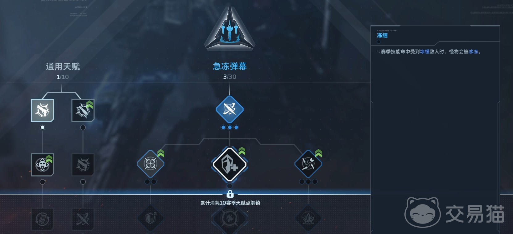 《逆战:未来》的天赋系统采用双分支成长机制,玩家需根据实战定位选择适配的发展路径。赛季开启时,所有角色的天赋树将重置归零,玩家需重新规划加点策略。基础天赋点通过提升赛季等级获得,每升一级即解锁对应数量的赛季天赋点,用于在“急冻弹幕”与“机械之舞”两大核心天赋体系中进行分配。