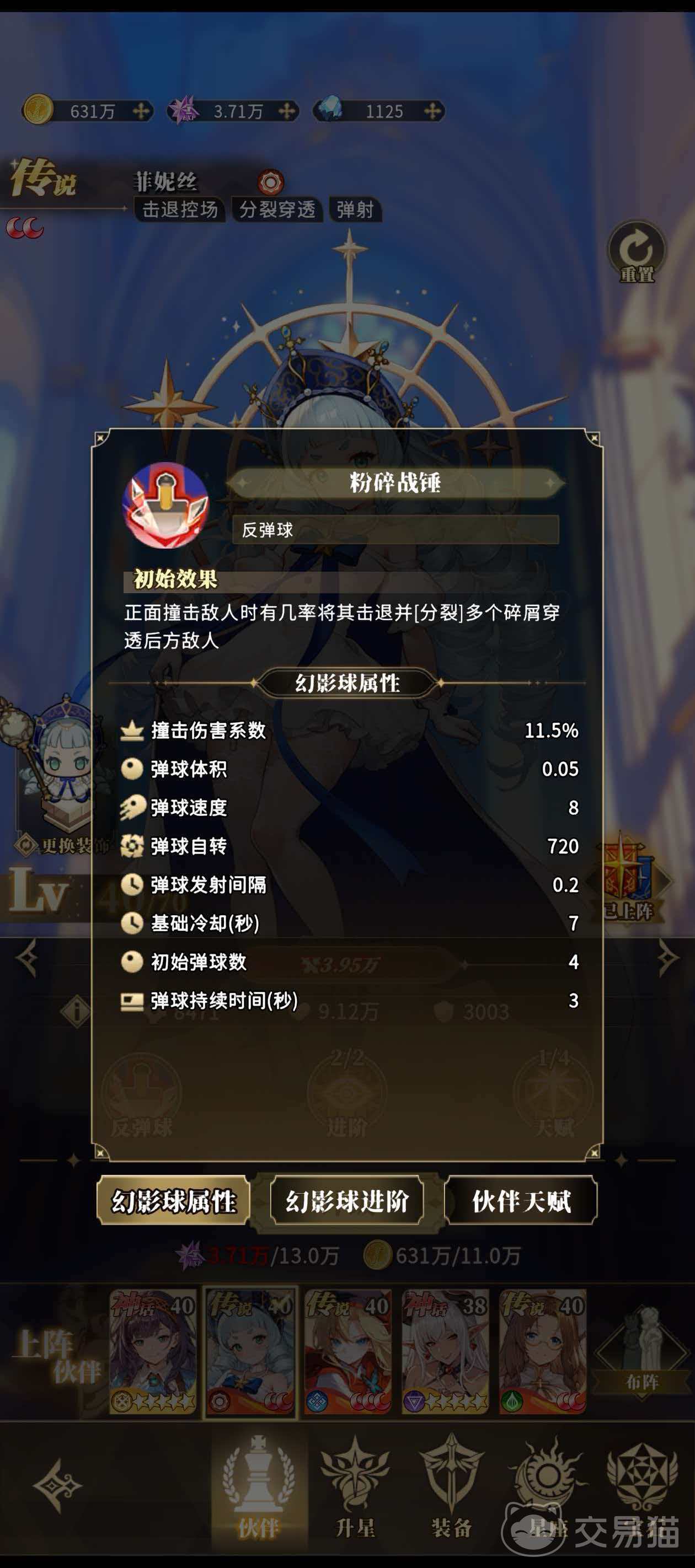 兼具击退控制与链式穿透的物理系角色。幻影球“粉碎战锤”在正面撞击敌人时,有概率触发击退效果,并分裂为多枚碎屑,穿透后续目标。进阶后,整体伤害提升60%,且正面撞击附加40%冲击伤害,使其在应对密集阵型或关键前排时具备极强的打断与连锁压制能力。