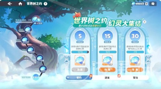 装备体系方面,前期应优先通过商店兑换或冠军讨伐获取套装部件,凑齐两件即可激活基础套装效果,带来显著战力增幅。主角升级所需的世界树枝叶,则需通过公会讨伐、派遣任务等常规玩法稳定收集。此外,周期性运营活动是宝具爆发式增长的关键节点,例如“7天启程庆典”活动,每日完成指定任务即可领取宝具;累计达成320点成长印记后,还可兑换随机传说幻灵——该幻灵附带绑定宝具,相当于零成本获取核心养成资源,具备极高性价比。