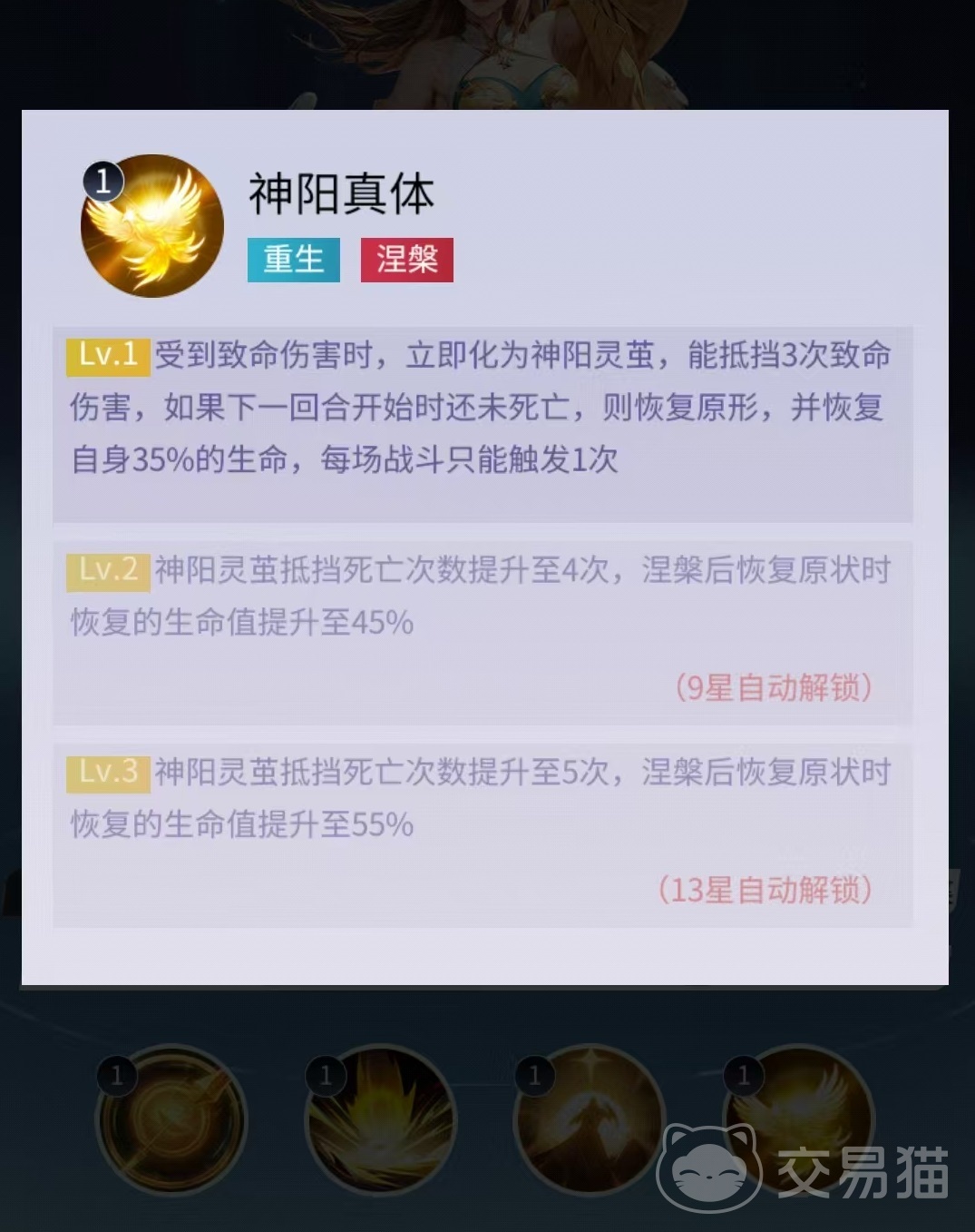 除怒气技外,金乌的普通攻击亦具备灼烧附加能力,且攻击目标优先选择已处于灼烧状态的敌人,形成良性循环。其被动技能“涅槃化茧”可在受到致命伤害时立即触发,连续抵挡三次致死判定;若在下一回合开始前未阵亡,则自动恢复本体形态并回复少量生命值。该机制实质赋予角色三次容错机会,大幅提升生存韧性,即便身处后排遭集火也能快速重返战场继续输出。