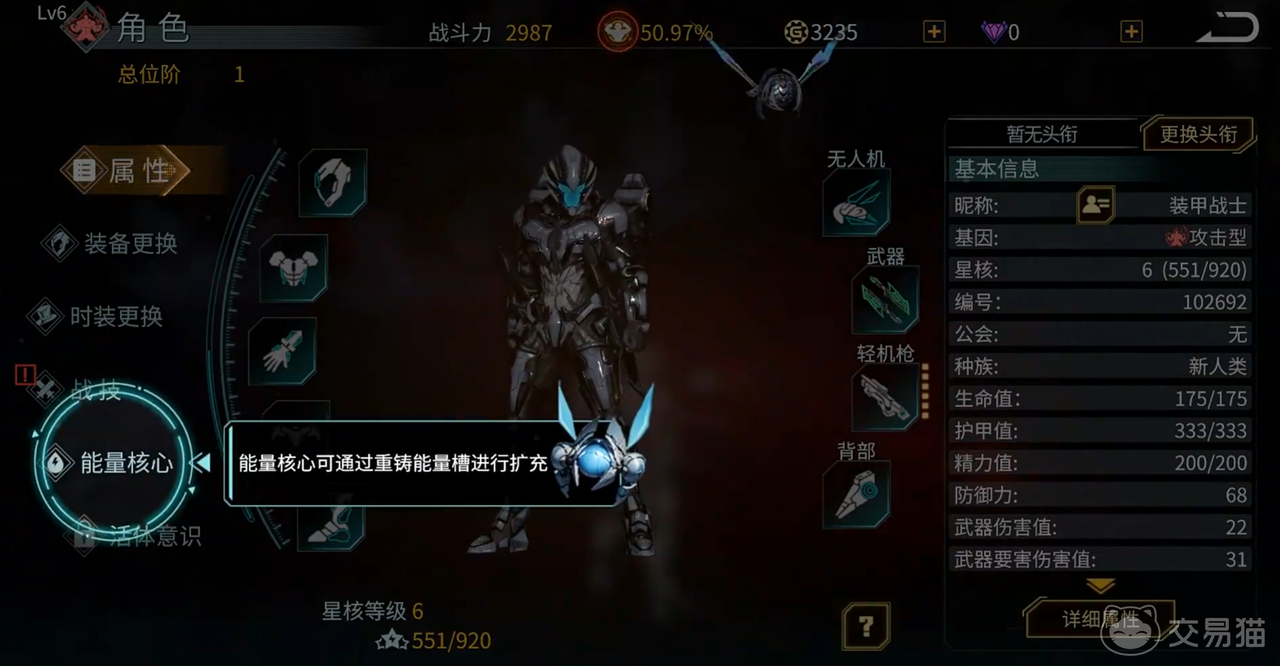 战斗层面,机甲本身具备基础性能框架,但实际战力跃升依赖外部装备体系支撑。游戏内设四大装备品类:主武器、轻机枪、装甲组件与战术无人机。其中装甲进一步细分为头部、上身、腰带、背部、手部及下肢六大部位模块,各部位专属装备需随主线进度逐步解锁。所有装备均可通过提交指定情报素材,在NPC艾迪生处完成锻造。每件装备附带差异化属性加成,点击预览即可查看详细效果说明。