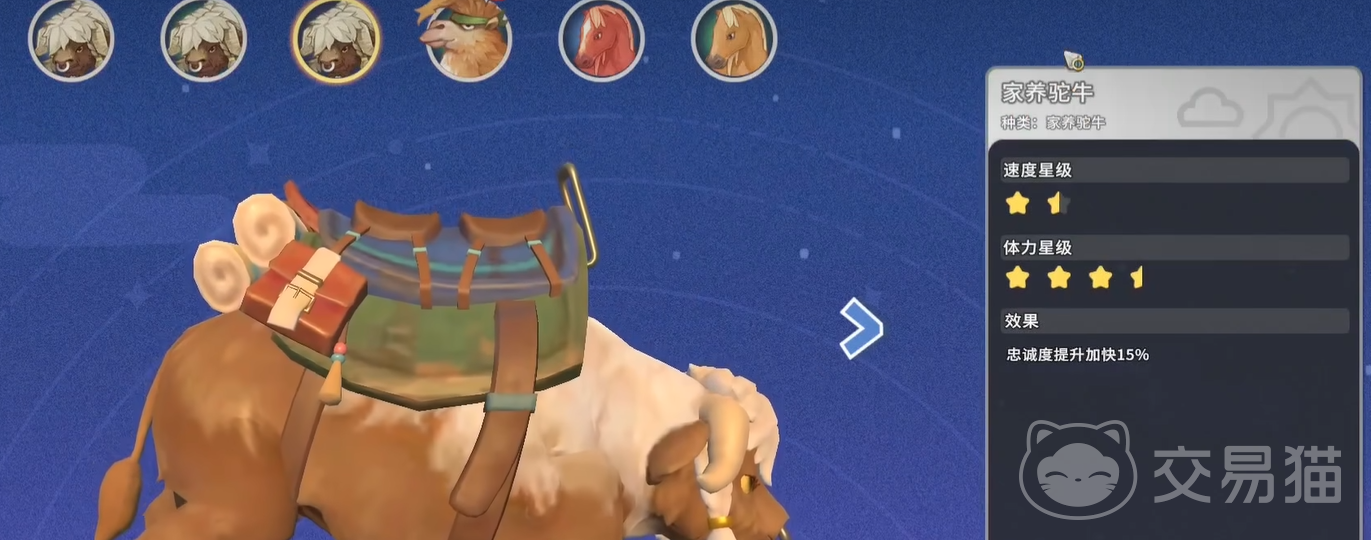 驮牛则代表另一种功能路径:以牺牲移动速率换取空间拓展能力。其核心价值在于内置扩展背包,可同步提升角色携带上限。该特性对采集导向型玩法具有不可替代性——单次出行即可装载更多矿石、木材、草药等基础材料,显著降低往返频次,提升单位时间资源转化率。此外,驮牛普遍具备更高体力储备,适应长时间野外作业需求,适合连续执行多点采集任务。